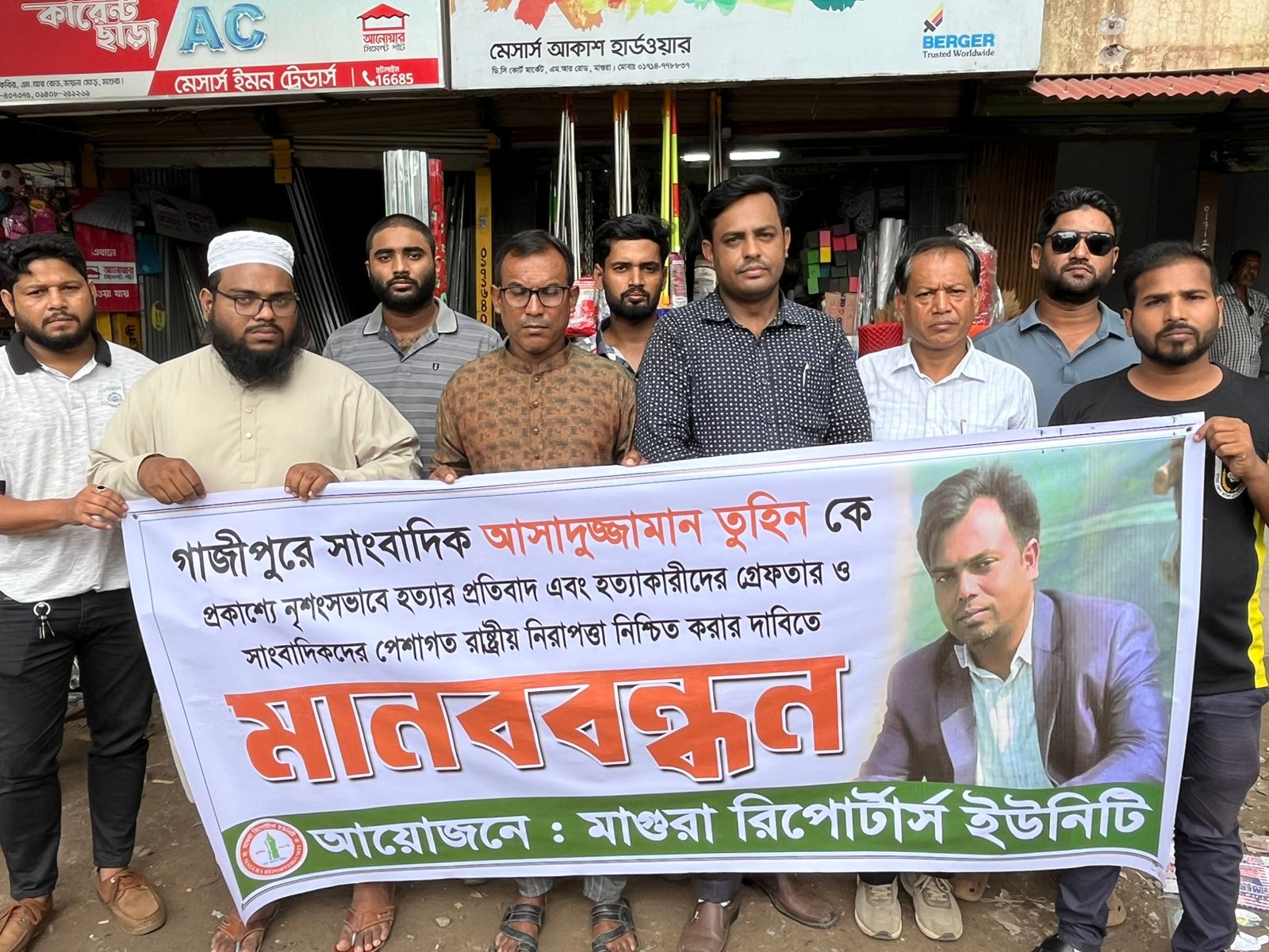 সাংবাদিক হত্যার প্রতিবাদে মাগুরায় সাংবাদিকদের মানববন্ধন ও বিক্ষোভ