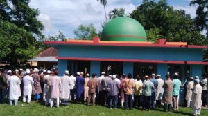 নামাজপূর্ব আলোচনায় জেলা বিএনপির আহবায়ক আলহাজ্ব আলী আহমেদ বিএনপির চেয়ারপারসন বেগম খালেদা জিয়া, ভারপ্রাপ্ত চেয়ারম্যান তারেক রহমান, বিএনপি এবং নিজের জন্য দোয়া চান। পাশাপাশি মসজিদের উন্নয়নে ১০ হাজার টাকা অনুদান প্রদান করেন।