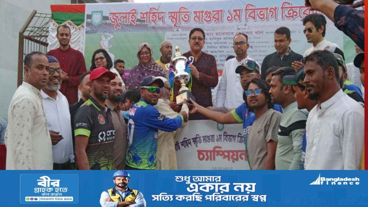 খেলা শেষে বিকেলে স্টেডিয়াম মাঠে মাগুরা-1 আসনের সংসদ সদস্য মনোয়ার হোসেন খান প্রধান অতিথি হিসেবে উপস্থিত থেকে চ্যাম্পিয়ন ও রানার্সআপ দলের হাতে ট্রফি তুলে দেন।