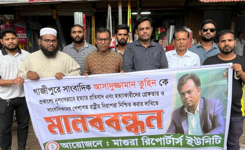 সাংবাদিক হত্যার প্রতিবাদে মাগুরায় সাংবাদিকদের মানববন্ধন ও বিক্ষোভ